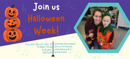Come join us on Tuesday, Oct. 28 or Friday, Oct. 31 at 9:15am for an especially fun-filled Halloween Event! Whether your child comes dressed in something silly, pretty, or scary, EVERYONE will receive a special treat!🎃 Children ages 0-6 are welcome to attend!
